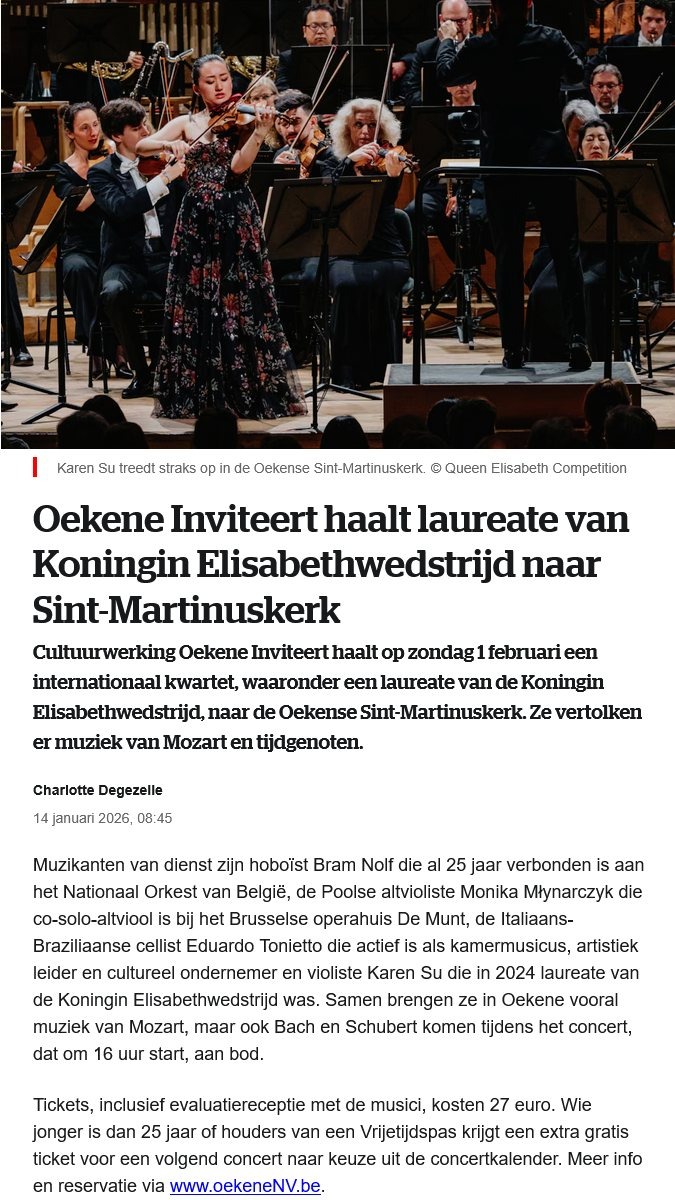 - Zaterdag 16 mei ‘26 – 20 u. – St.-Martinuskerk – Plaats 4 – 8800 OEKENE-ROESELARE